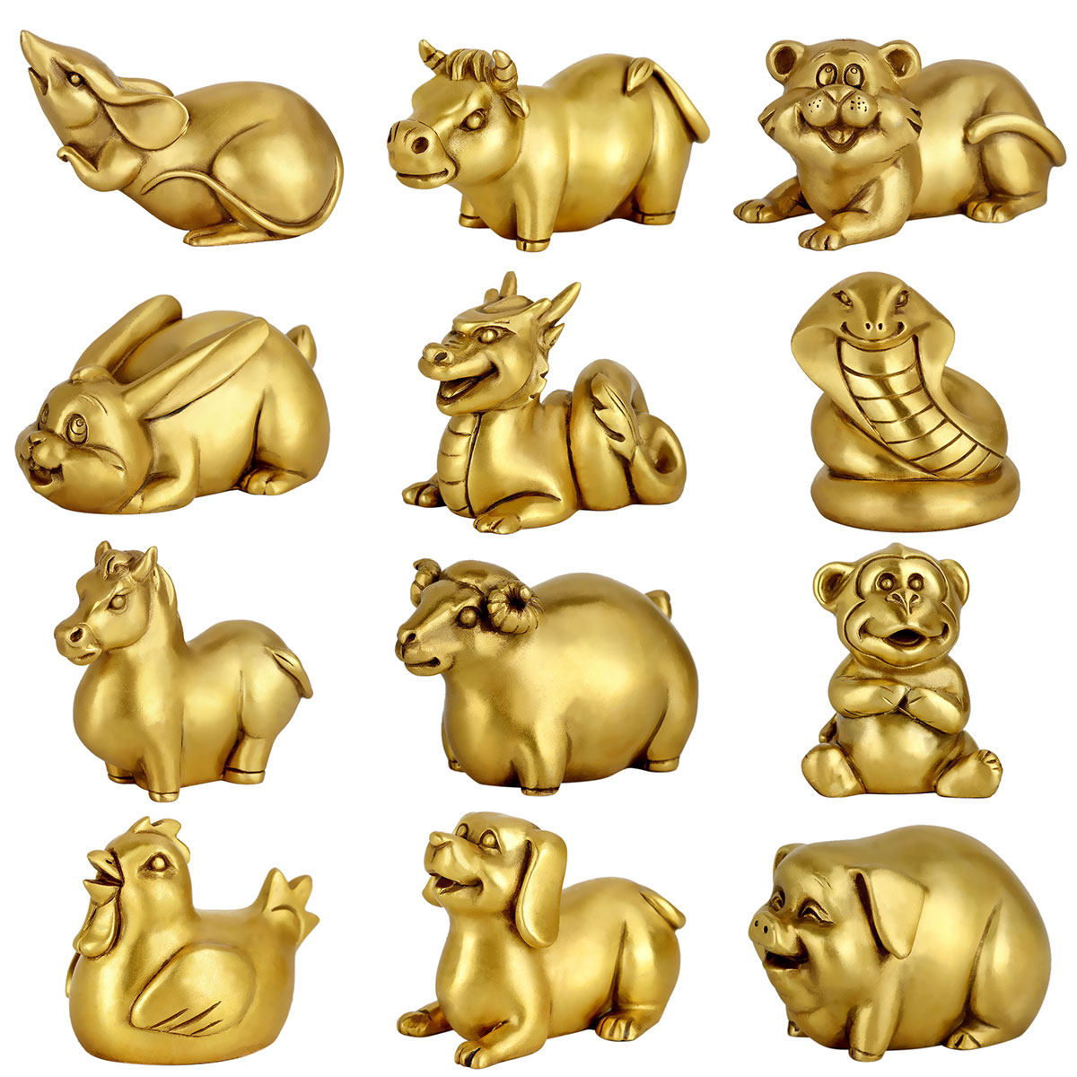 纯铜十二生肖摆件 鼠牛虎兔龙蛇马羊猴鸡狗猪铜器 如意底部 黄铜