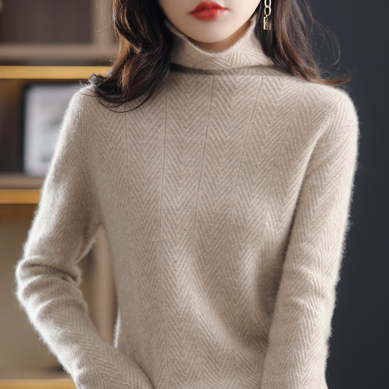 羊绒衫女半高领提花加厚纯羊绒毛衣羊毛衫套头长袖修身打底针织衫_7折