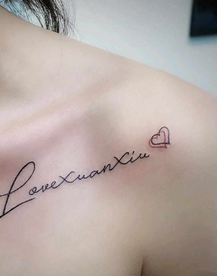 向爱的人表达爱意|锁骨英文纹身~ 太好看了吧~[偷笑] 女生纹身 . .