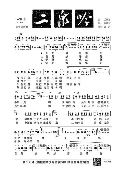 二泉吟简谱-曾静演唱-张名河/孟庆云词曲1