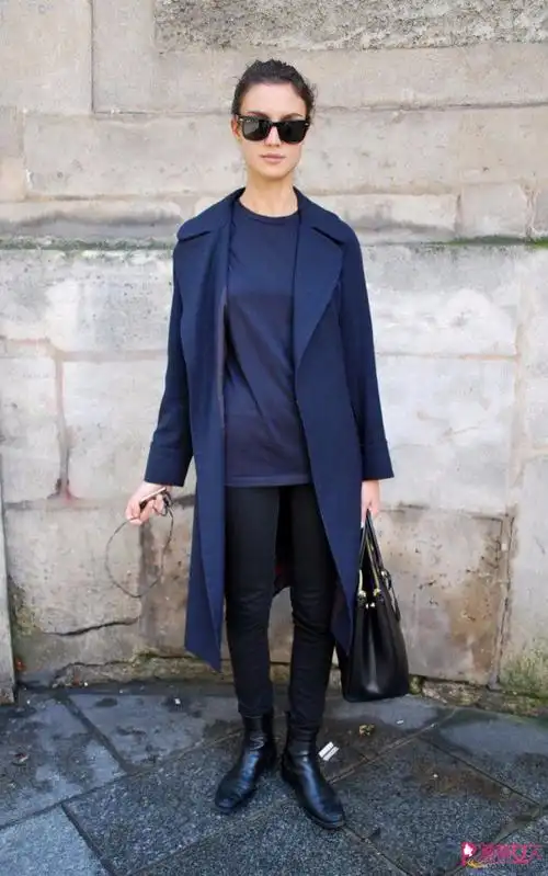 深蓝色外套或者上衣, 灰色的裤子 总是可以与蓝调稳妥的搭配起来牛仔