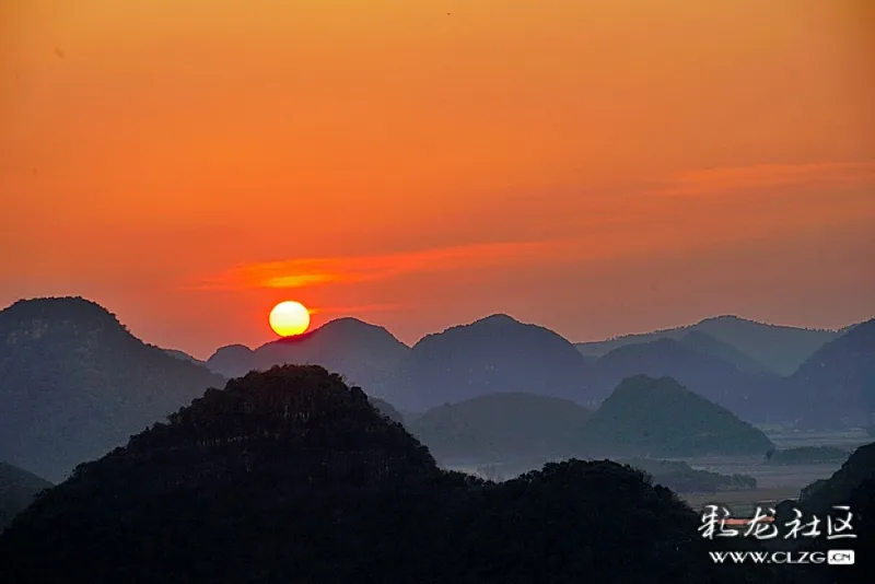 但群山若影若现,薄薄的晨雾和初升的太阳是清晨给与山水间最好的馈赠