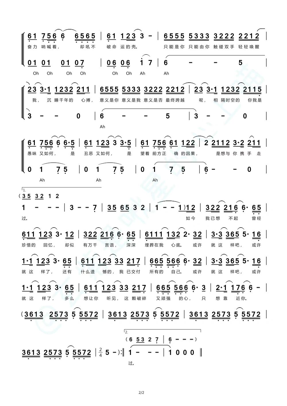 化身孤岛的鲸简谱-周深-一只孤独的鲸鱼1
