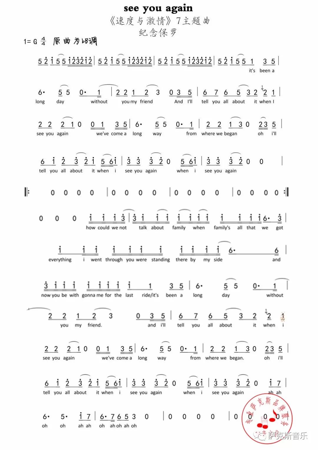 see you again 简谱99 有点长 耐心看完 哦⊙66⊙!