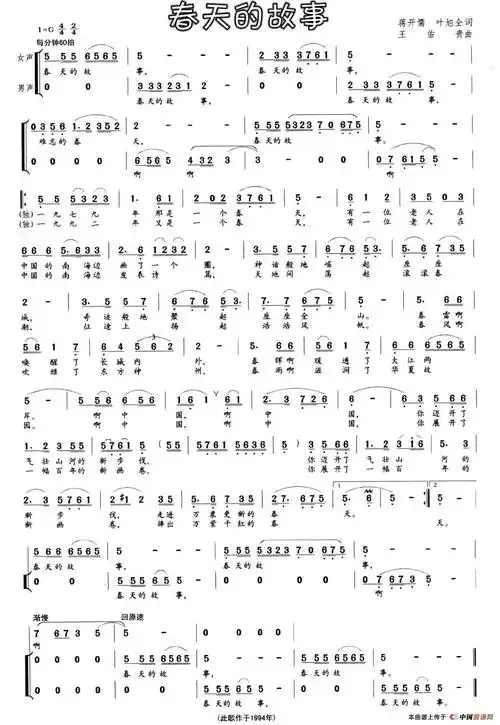 春天的故事_简谱_搜谱网