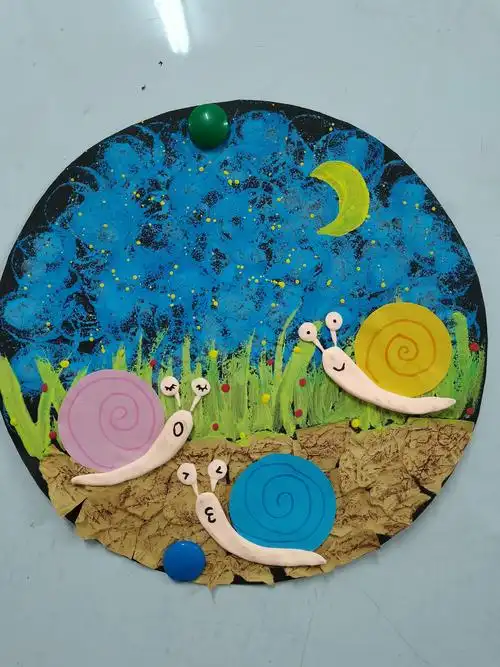 幼儿创意美术:蜗牛搬家 适合幼儿园大班和一年级画 后面有孩子画的