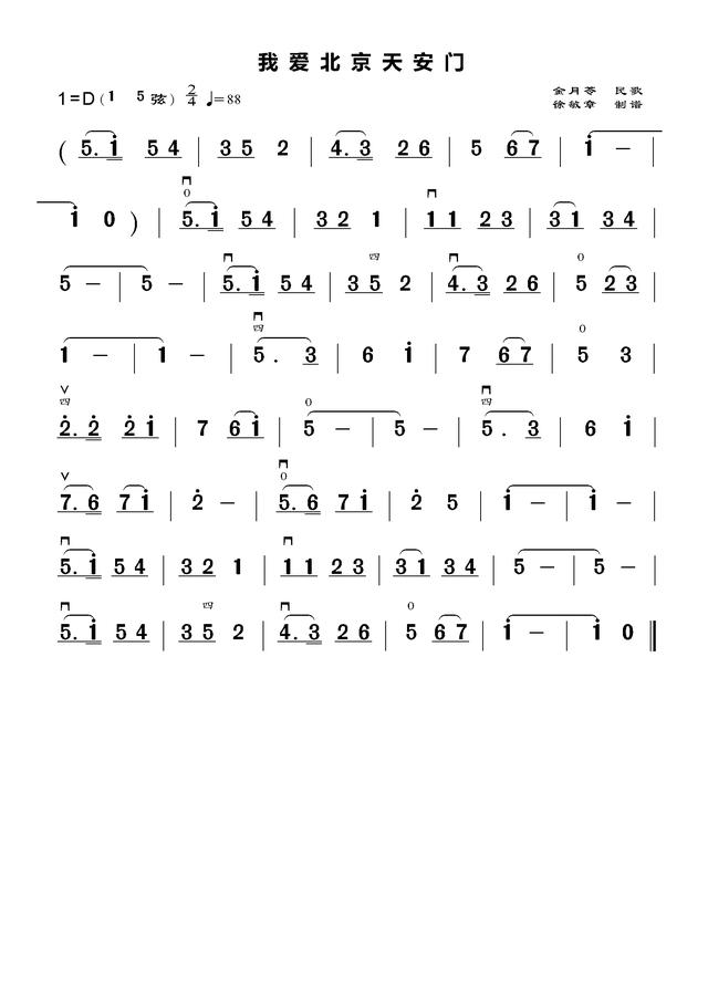 《我爱北京天安门》二胡d调动态伴奏简谱