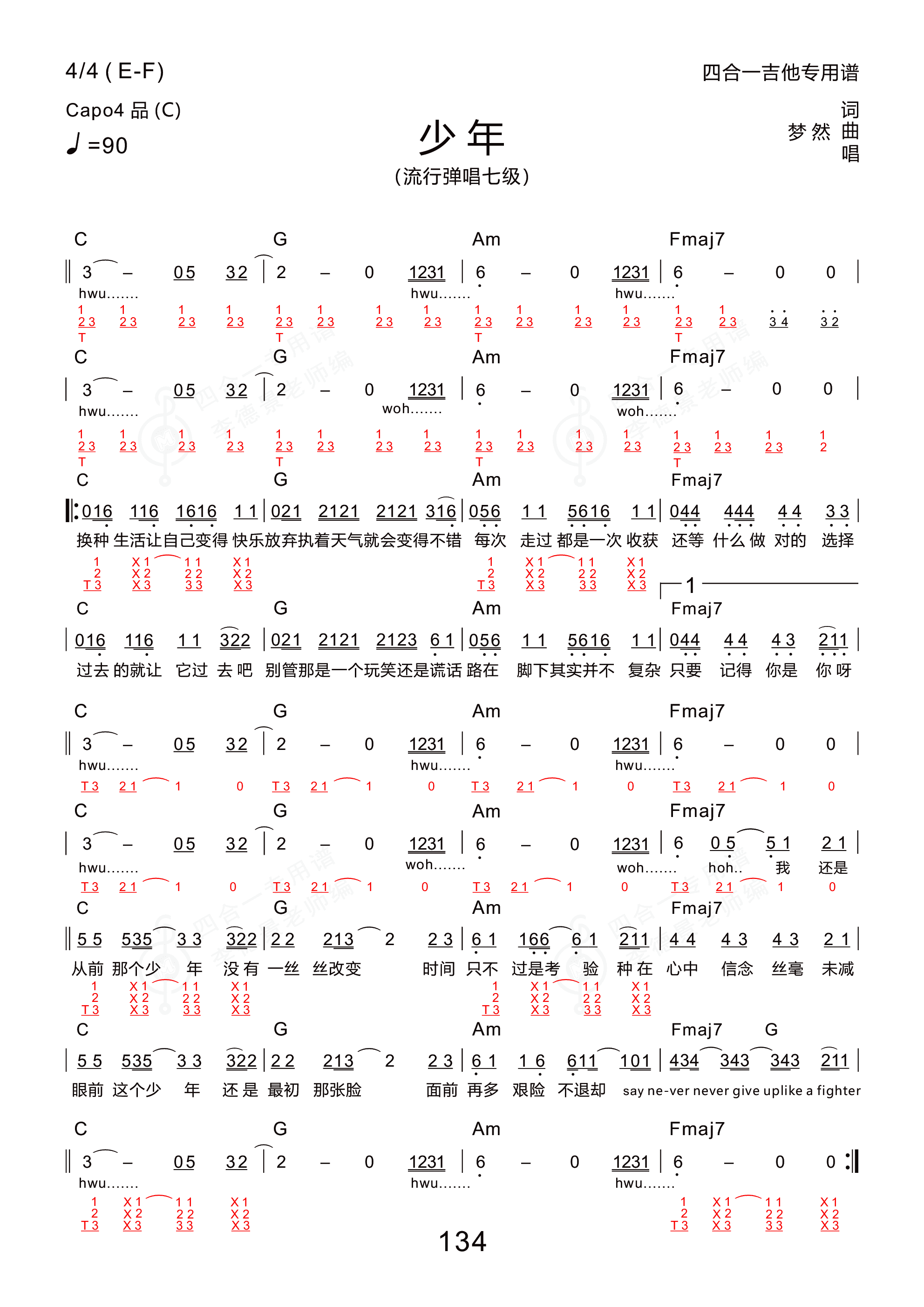 少年(新四合一吉他专用谱)吉他谱(pdf谱,少年,梦然,新四合一吉他专用