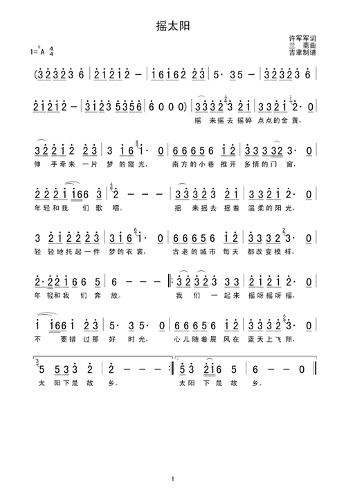 摇太阳简谱(歌词)—方芳演唱—岭南印象曲谱1
