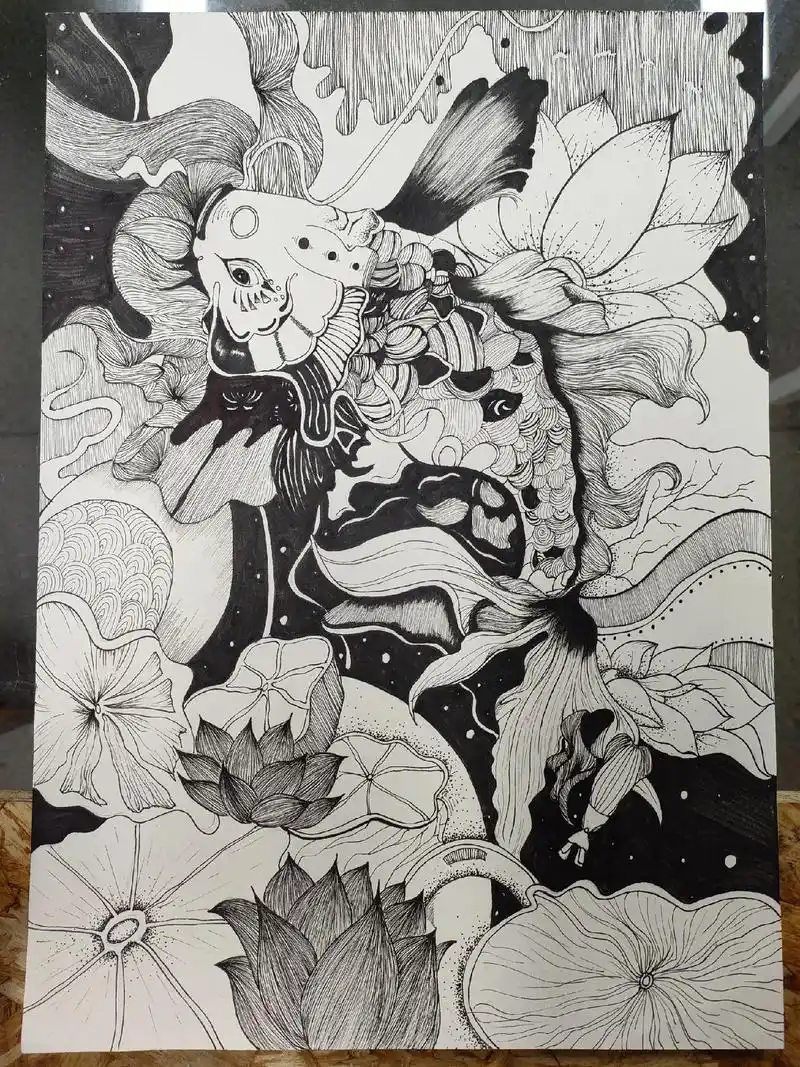 7515杂图分享.#临摹 #画画 #美术生 #黑白线描画 #九月 - 抖音