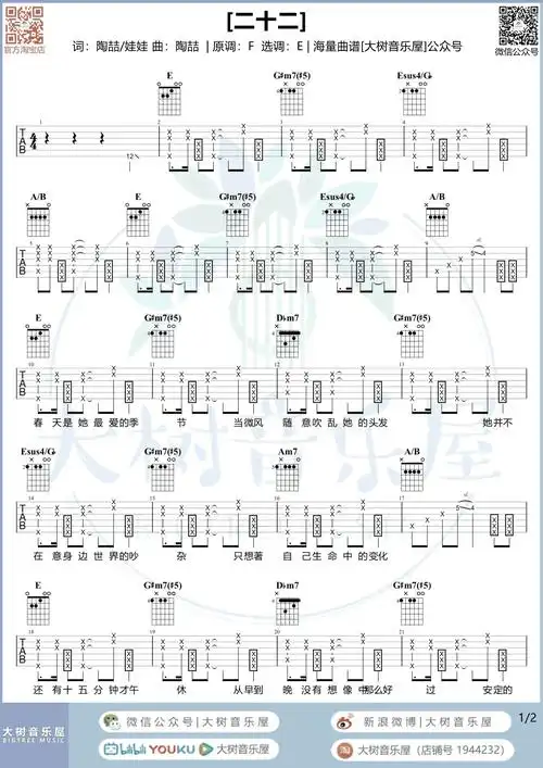 二十二吉他谱