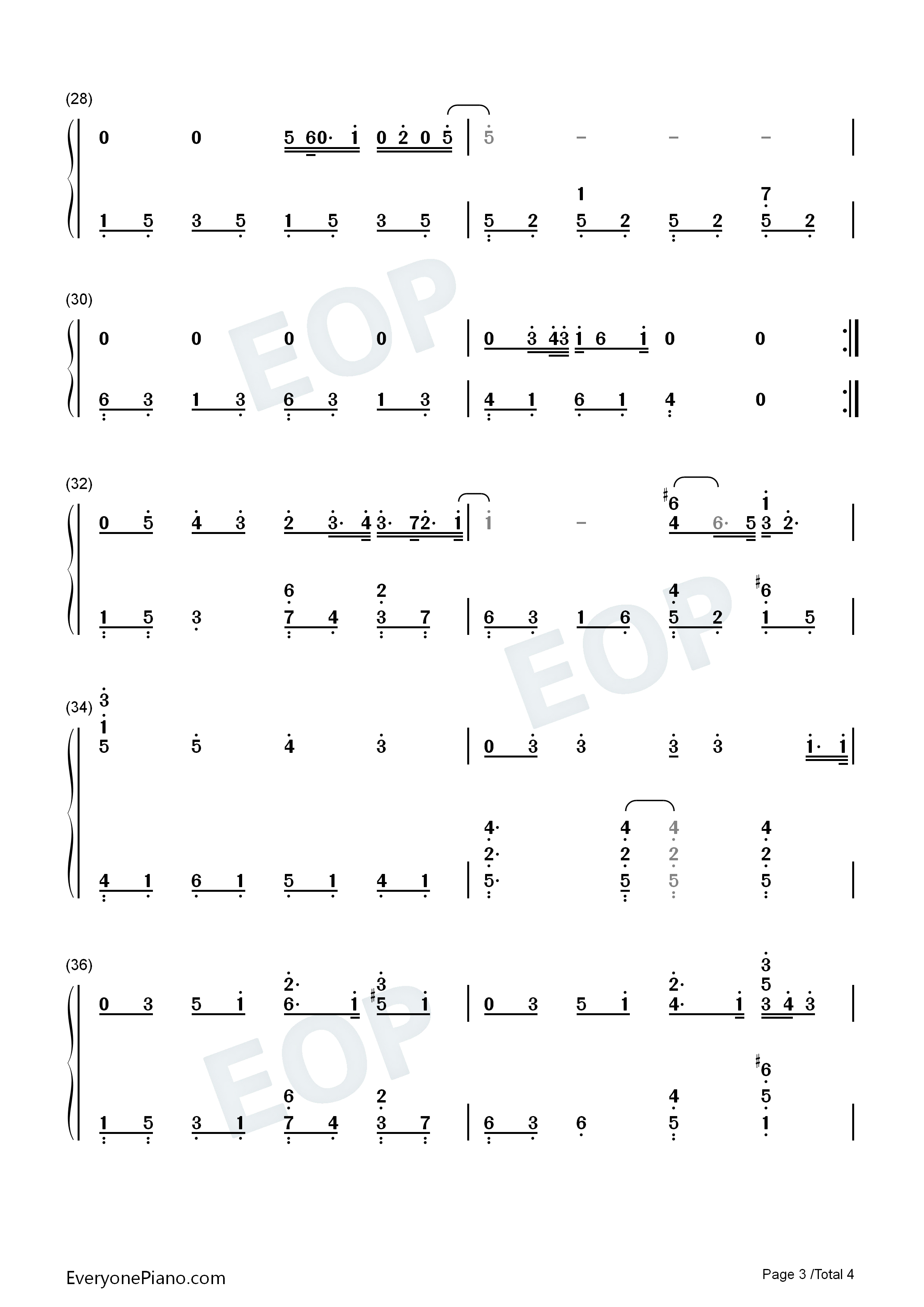 大笨钟(周杰伦)原版 钢琴双手简谱 钢琴谱 钢琴简谱