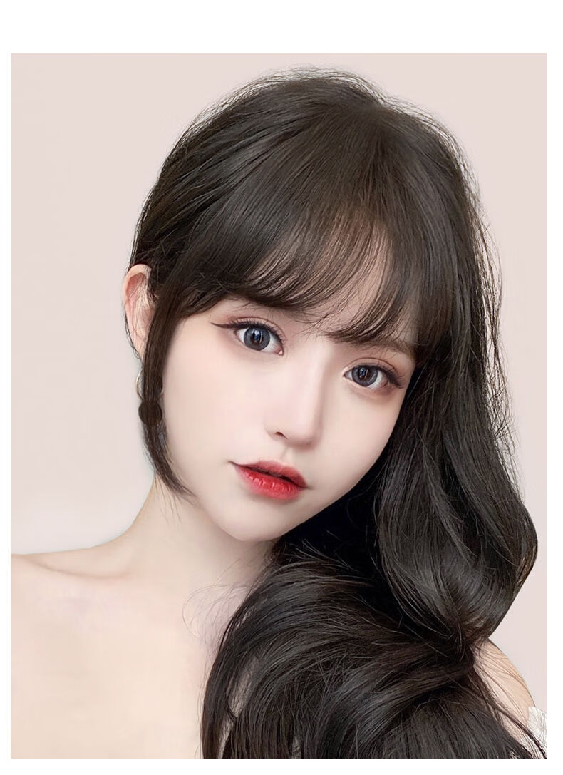 齐刘海假发女_假发女网红自然侧颜新法式八字空气刘海隐形无痕圆脸齐