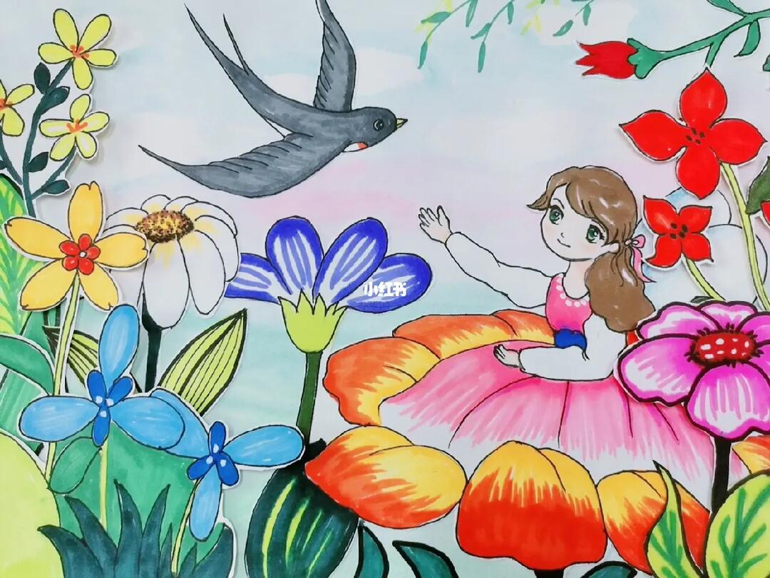 春天主题 装饰画 儿童画 简笔画 带线稿 #创意美术儿童画# #儿童简笔