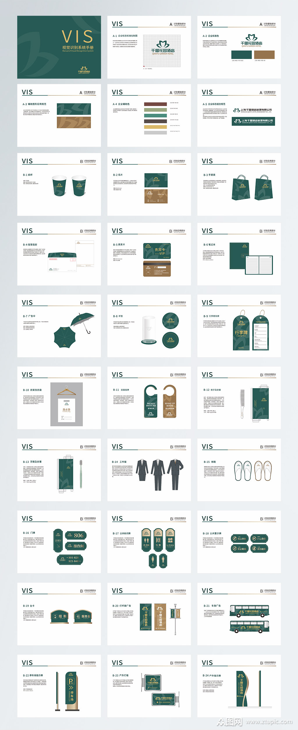 墨绿色高档度假酒店vi手册模板下载-编号700054-众图网