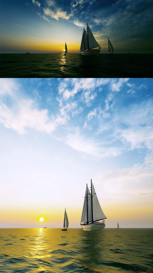 帆船_漂亮_早晨_彩色_日出_俯视_高清图片_全景视觉