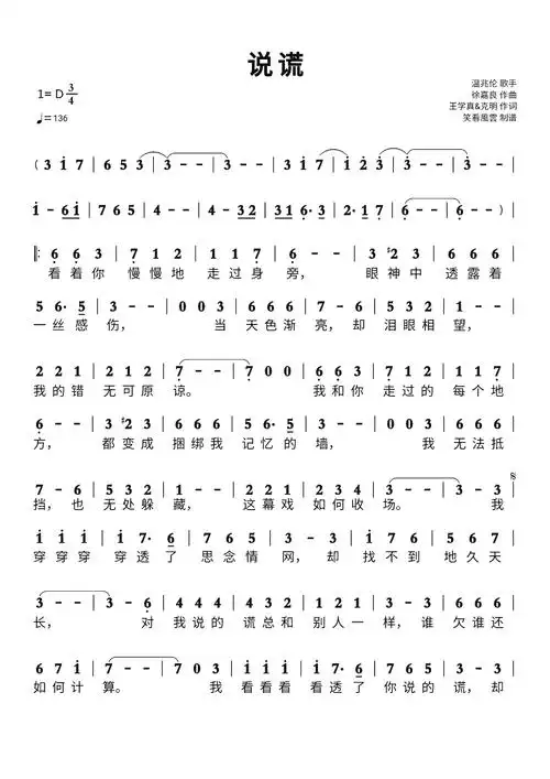 说谎简谱