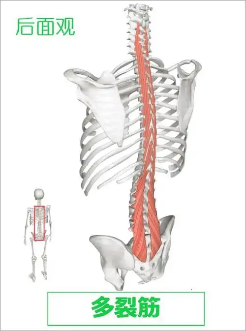 从解剖位置上看,多裂肌位于脊柱最内侧,是附着面积最大的椎旁肌,由多