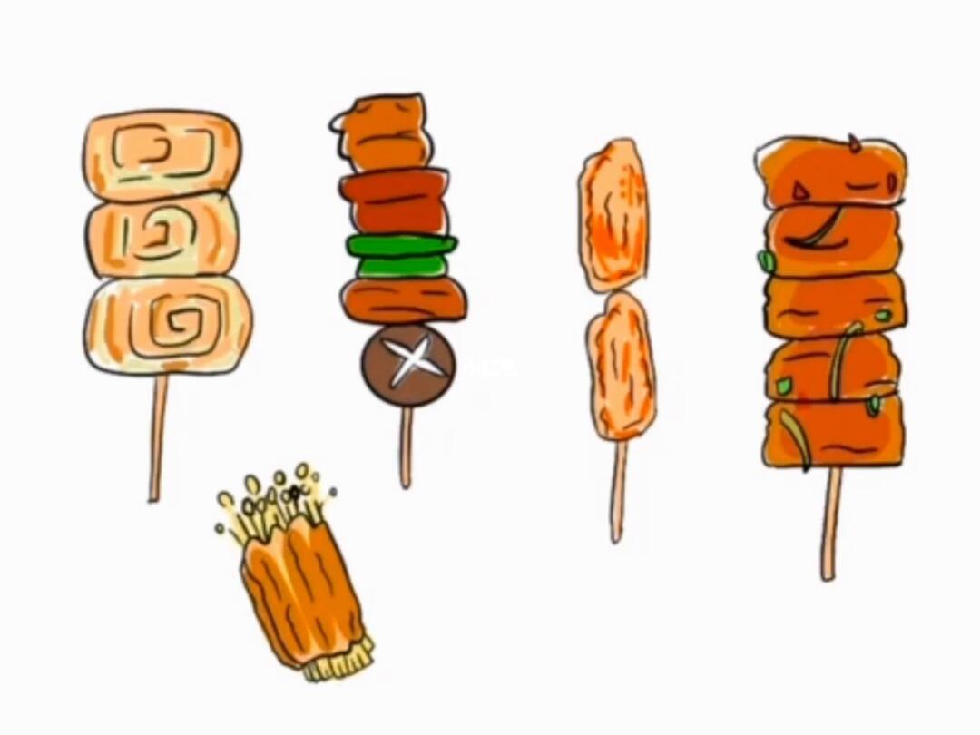 卡通冷串烤串串串炸串莲藕片土豆片线条插画