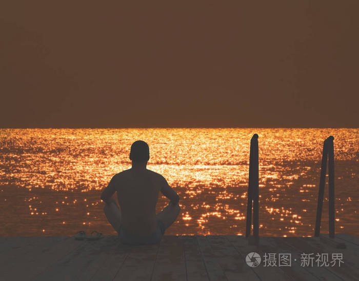 坐在海边的男人