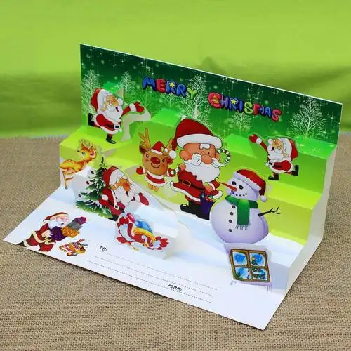 热销韩国创意 超大楼梯式圣诞节贺卡批发 特价可爱立体小卡片