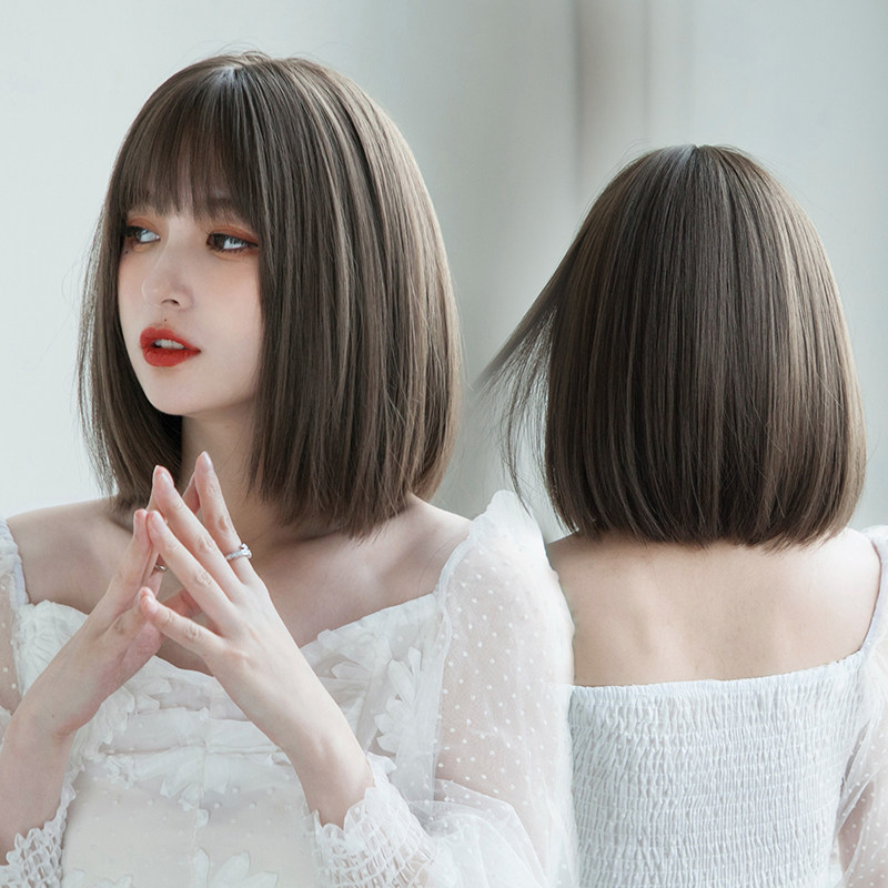 波波头中短发假发女 齐肩韩国自然无痕学生头圆脸短发造型全头套