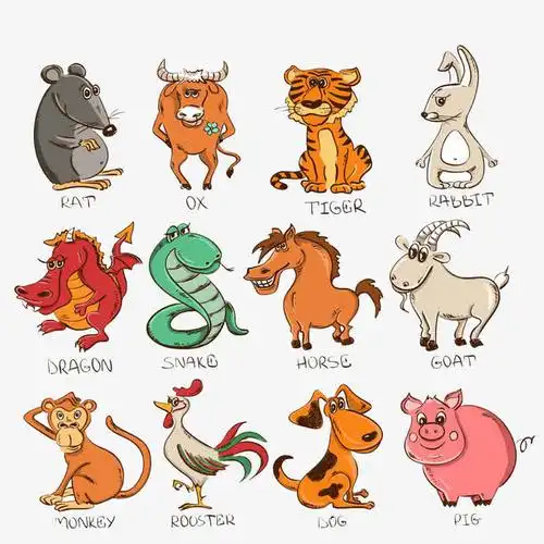 动物手绘元素插画十二生肖卡通可爱萌素材