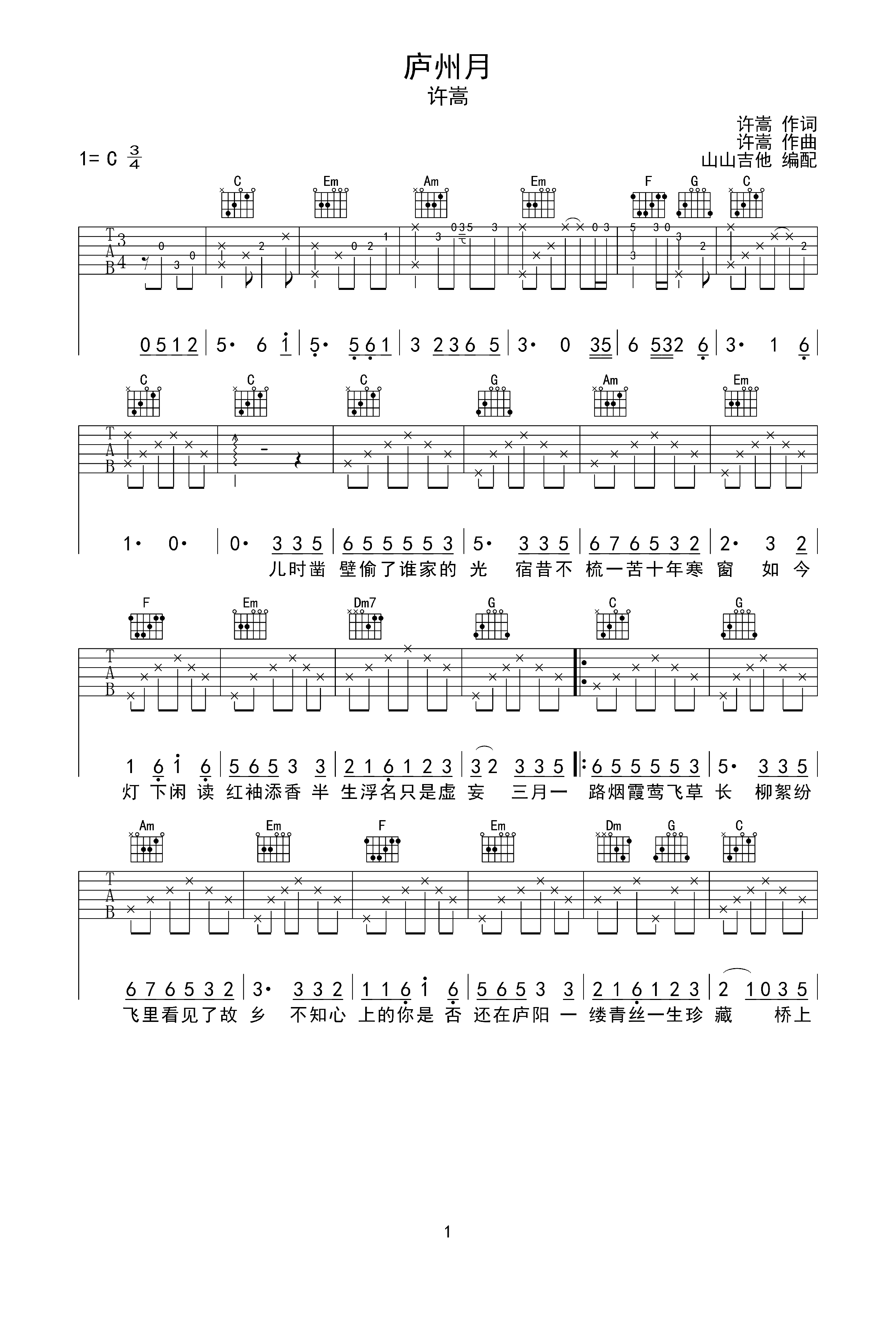 庐州月c调六线pdf谱吉他谱-虫虫吉他谱免费下载
