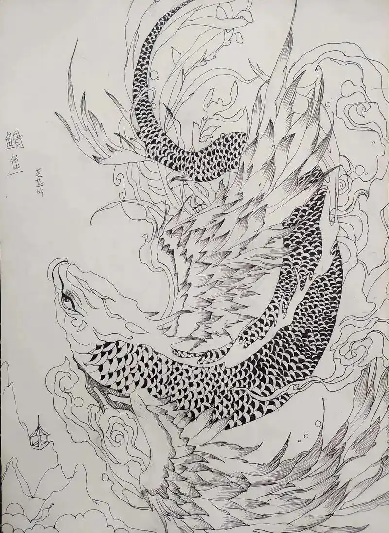 闲来摸一张#画画的日常 #线稿 #山海经 #山海经异兽 #绘画 #摸鱼