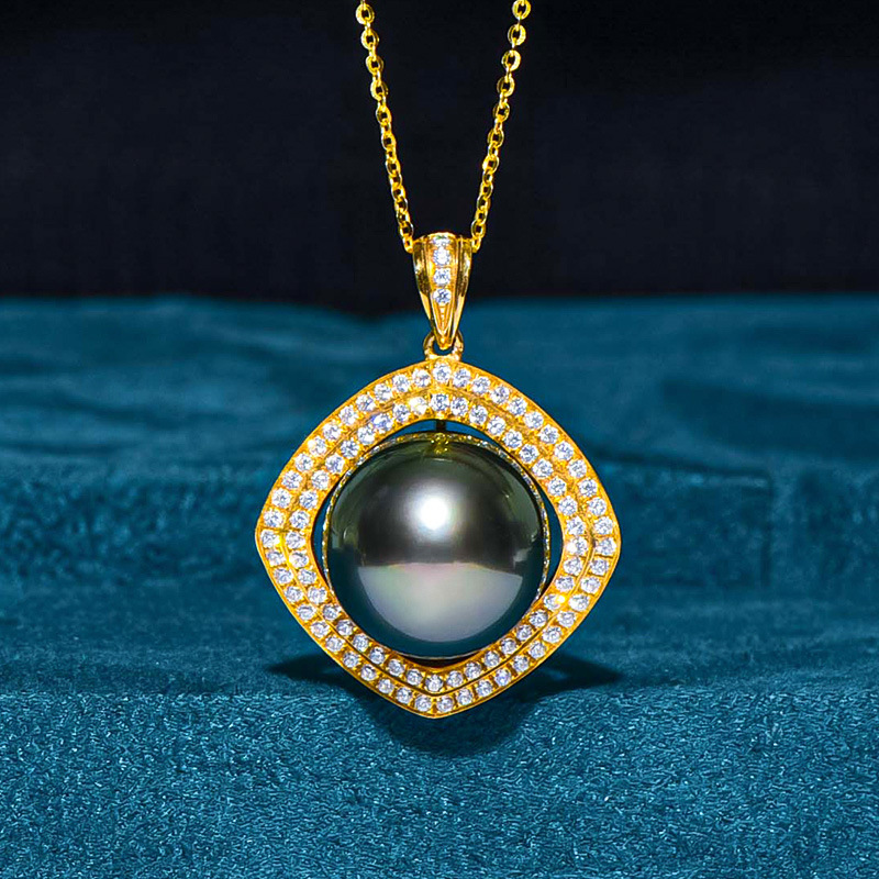 凤仪阁18k金菲律宾南洋金珠吊坠14-15mm单颗海水珍珠项链一件批发