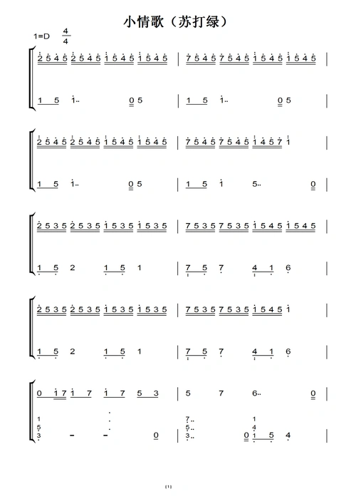 《小情歌》双手简谱钢琴谱.#钢琴 #一本正经乱弹琴 #简谱 - 抖音