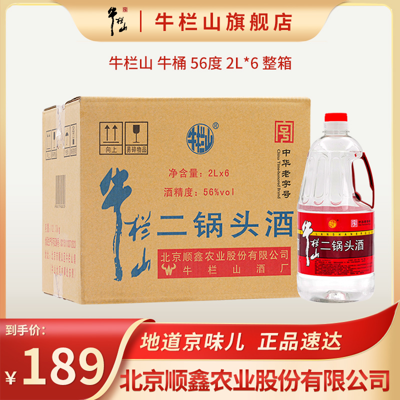 牛栏山二锅头牛桶56度 2000ml(2l)两升*6桶整箱装 清香风格酒水