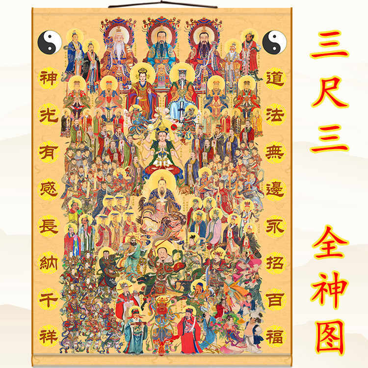 道教全神图三清天尊玉帝王母雷祖道场神仙卷轴挂画众神图水陆画