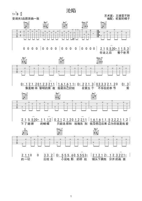 沦陷吉他谱王靖雯不胖演唱g调高清弹唱谱
