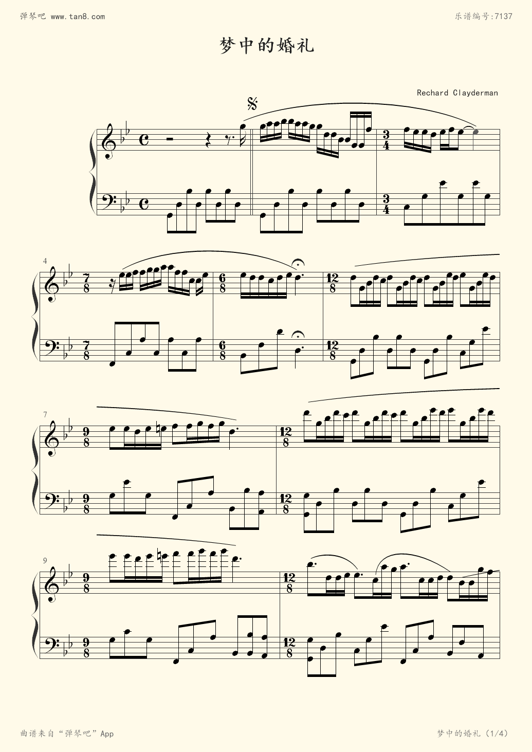 钢琴曲高清五线谱梦中的婚礼