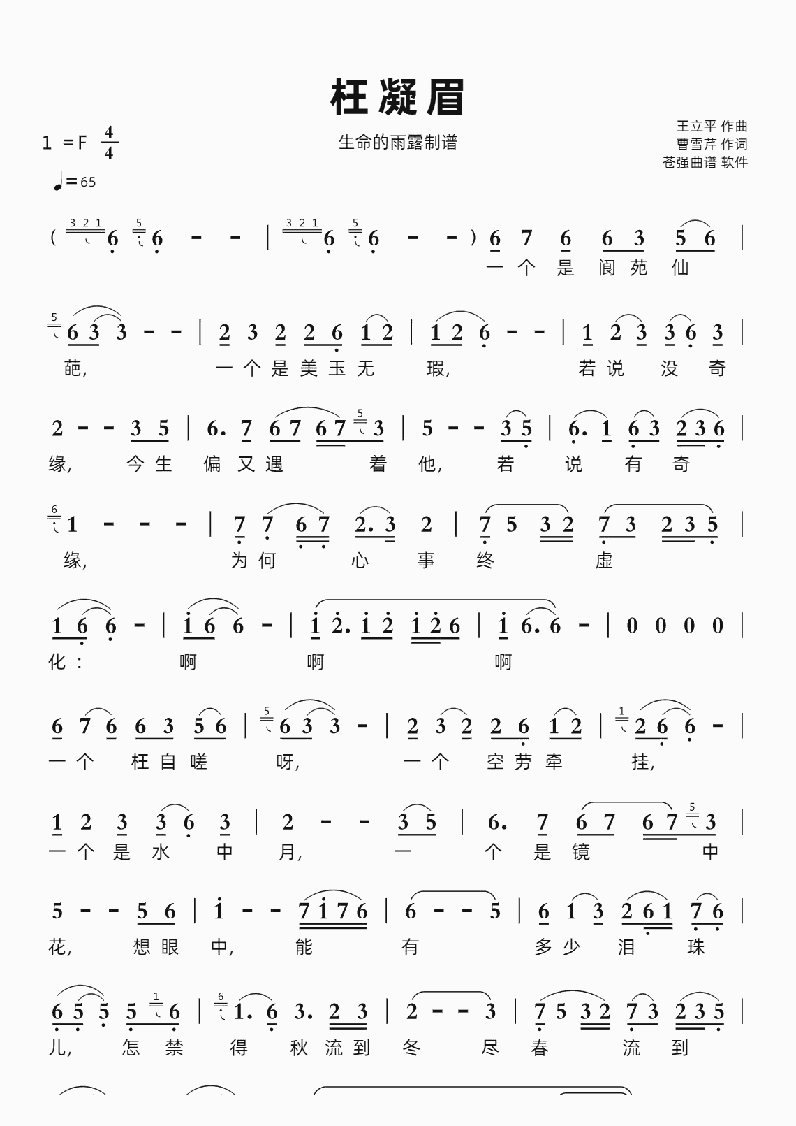 枉凝眉简谱-郑绪岚演唱-曹雪芹/王立平词曲1