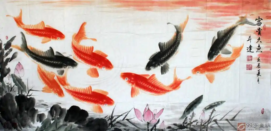 旺运又招财,家居吉祥风水画九鱼图解读
