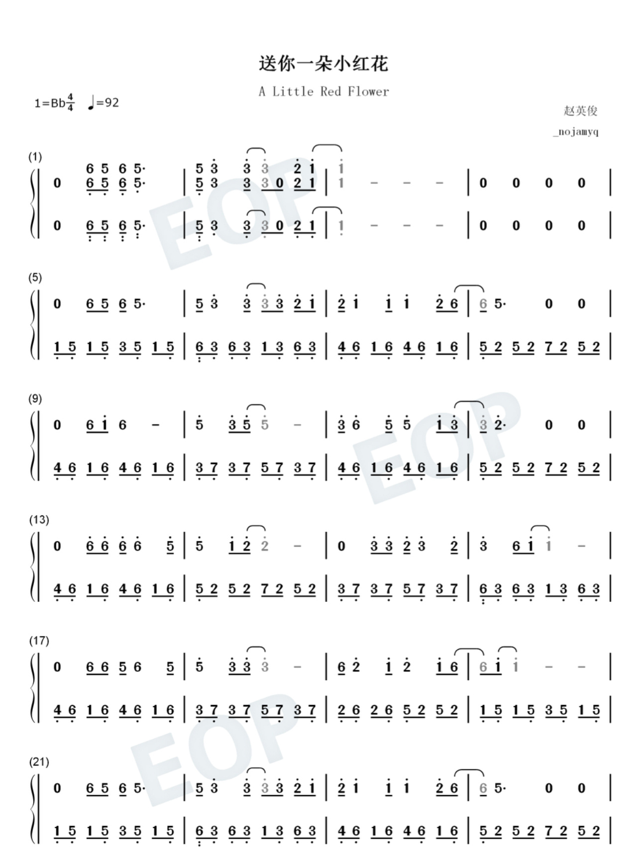 赵英俊原唱《送你一朵小红花-》视听谱,愿平行世界的你一切安好