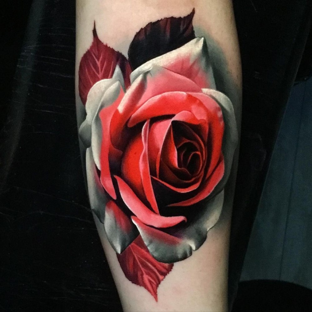 黑灰玫瑰花tattoo 男生拼接小纹身