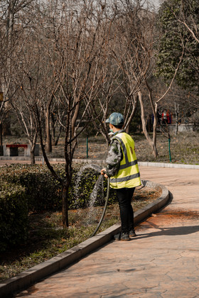 小区内辛勤劳动的农民工.(2)