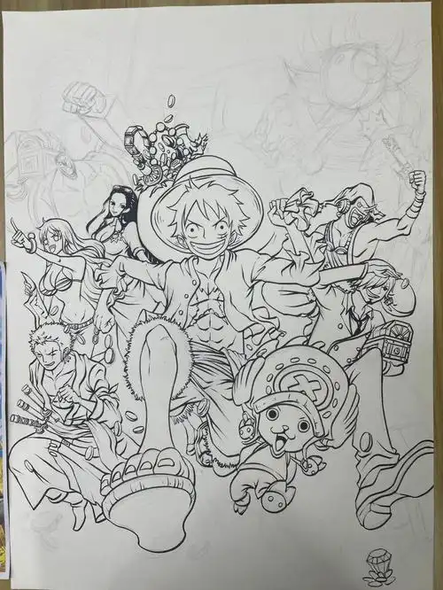 草帽海贼团全家福线稿绘画过程