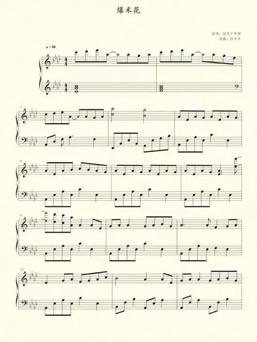 爆米花-钢琴谱文件(五线谱,双手简谱,数字谱,midi,pdf)免费下载