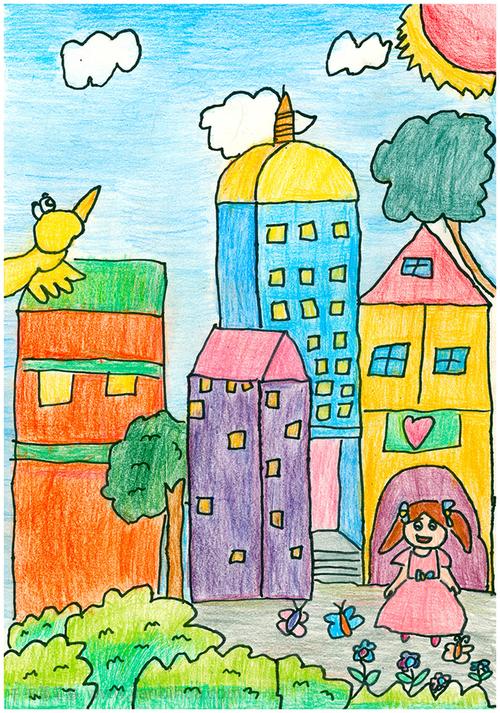 幼儿绘画作品《美丽的家园》
