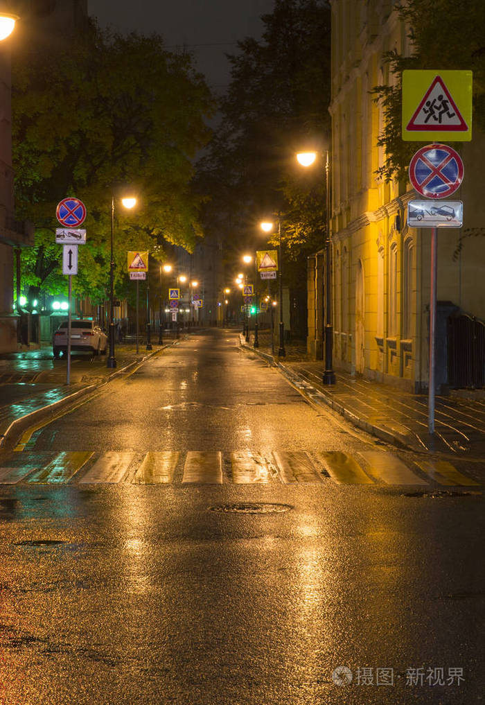 安静的城市街道在雨夜背景