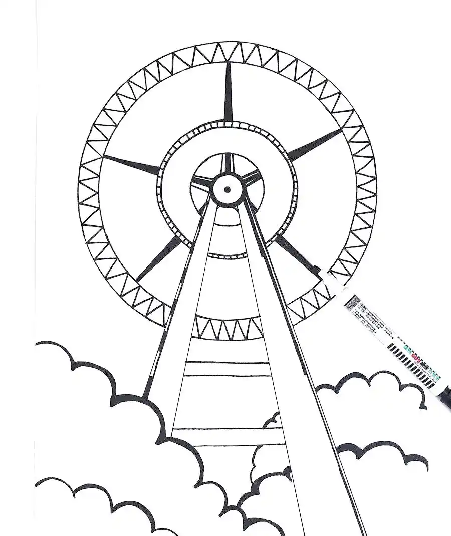摩天轮简笔画5步搞定!手残党也能画出梦幻高空景观