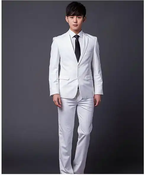 白色男士新郎西服两件套播音艺考修身西装主持宴会婚礼年会礼服