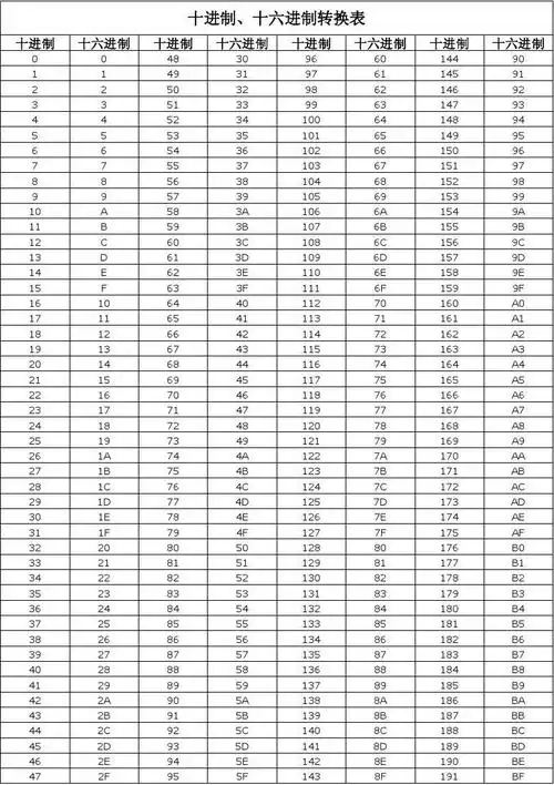十进制,十六进制,八进制和二进制转换表