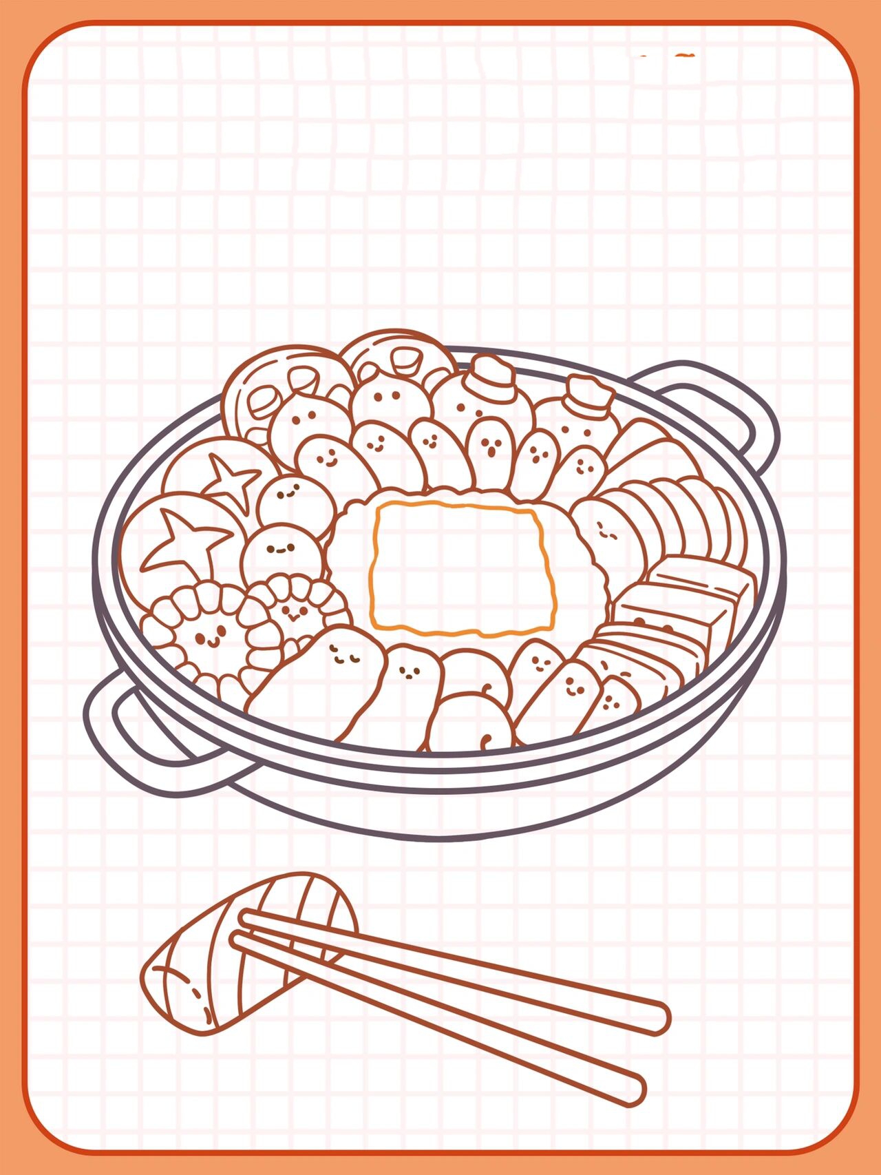 原创美食插画78韩国料理 | 部队火锅简笔画 恬花花简笔画小课堂第