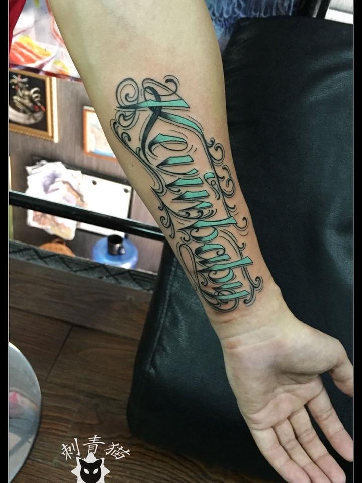 时针刺青手臂英文字母设计花体_纹身图案手稿图片_travis时的纹身作品