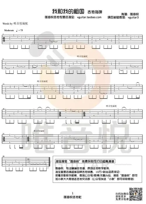 指弹吉他谱-我和我的祖国-唯音乐